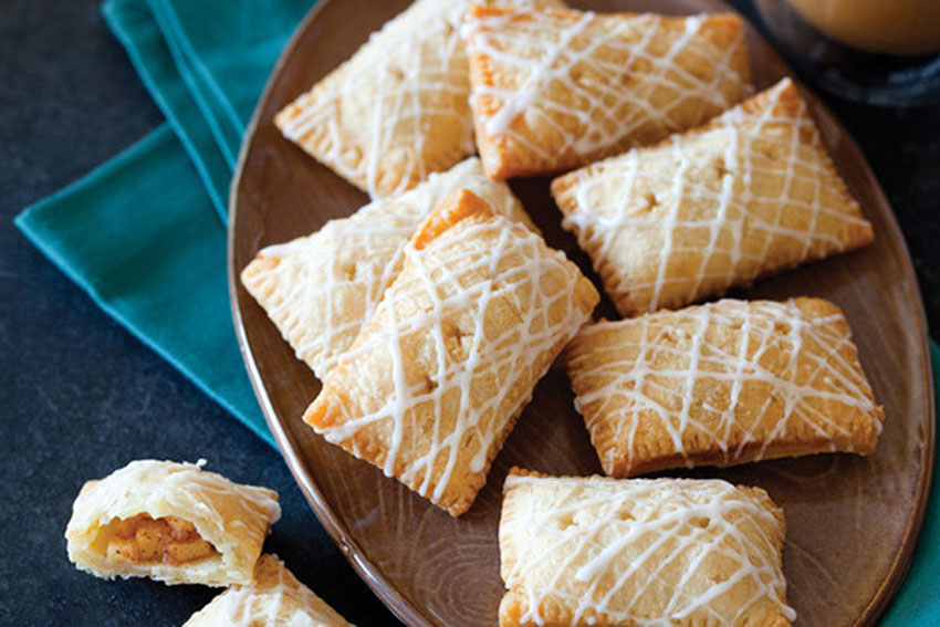 Bước 5: Cho một ít nhân táo vào giữa phần bột vừa cắt, sau đó làm ướt phần mép bột bánh để tăng độ dính. Gập đôi phần bột bánh lại, ấn đều các mép cho kín lại. Bạn có thể trang trí tạo các đường lượn sóng cho đẹp mắt cũng được.