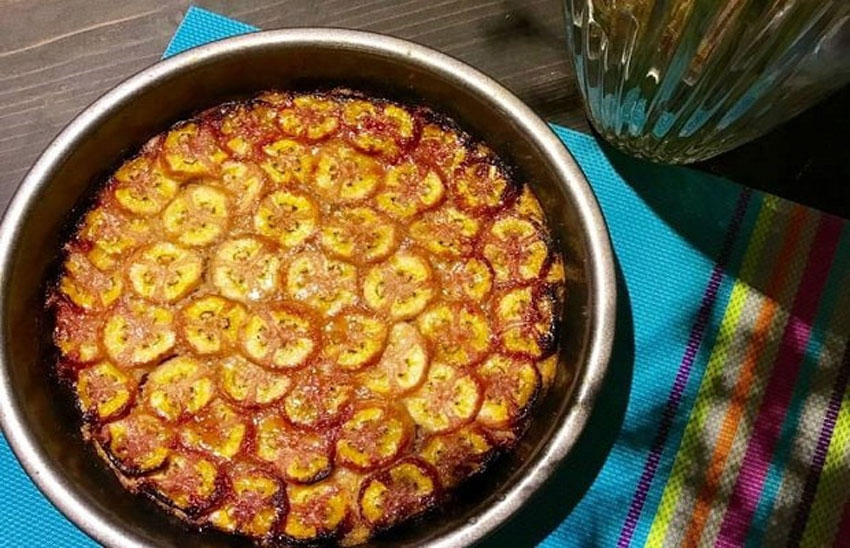 Khi đã chuẩn bị xong các nguyên liệu, bạn cho chảo lên bếp, xếp lá chuối kín chảo để bột không bị rơi ra ngoài chảo. Bật lửa vừa phải, khi chảo và lá chuối đã chín thì cho hỗn hợp đã chuẩn bị vào.
