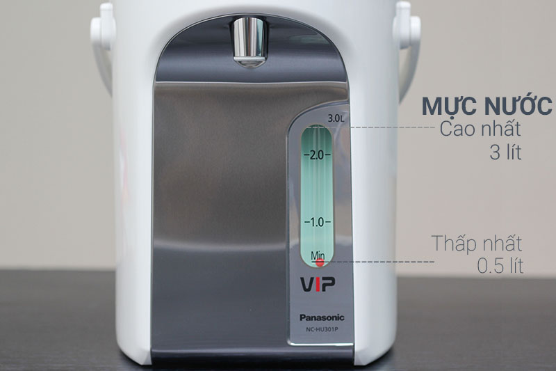 Bình thủy điện Panasonic NC-HU301PZSY 3 lít với thang đo mực nước tiện dụng giúp bạn dễ dàng quan sát lượng nước bên trong
