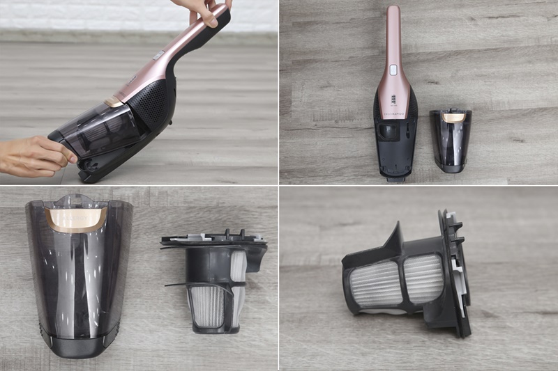 Hộp đựng bụi cùng bộ lọc đi kèm có thể tháo rời, dễ làm sạch với nước.