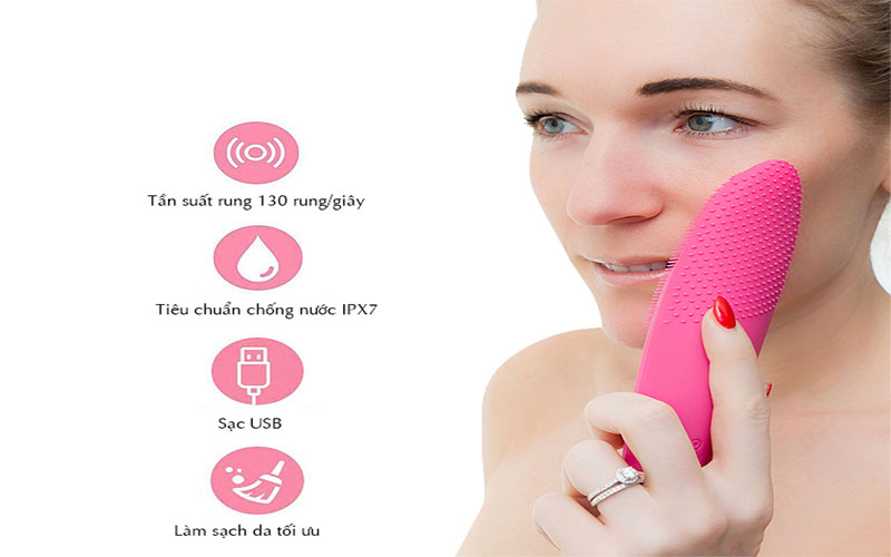 Máy rửa mặt công nghệ sóng rung, đầu gai silicone: phần đầu máy không cần phải thay và có thể chống nước. Người dùng chỉ cần lau chùi sạch sẽ và bảo quản ở nơi khô ráo sau khi sử dụng.