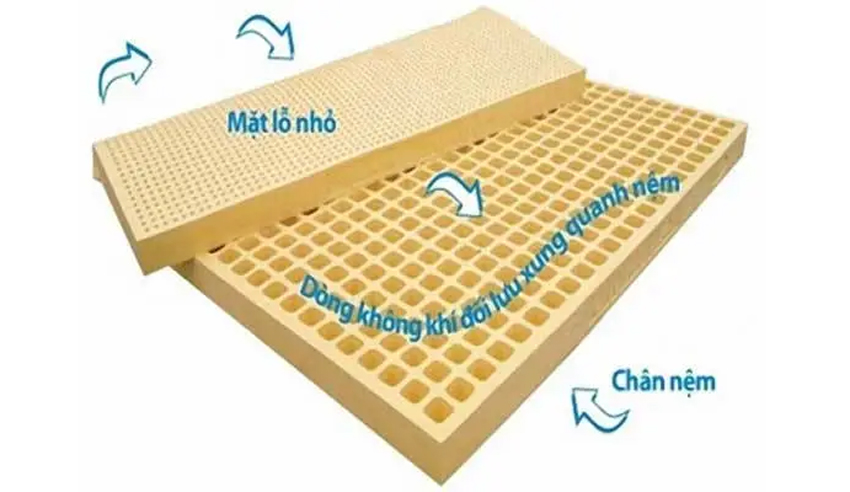 Bề mặt nệm được thiết kế với hơn 5.000 lỗ thoáng khí li ti và mặt dưới có hơn 500 lỗ thoáng khí tạo nên sự thông thoáng tối đa nên có thể sử dụng bất kể mùa nào trong năm.