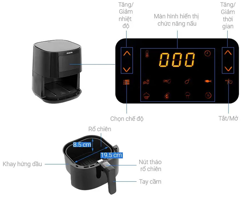 Thứ 4: Chức năng của nồi chiên không dầu Philips HD9252/90