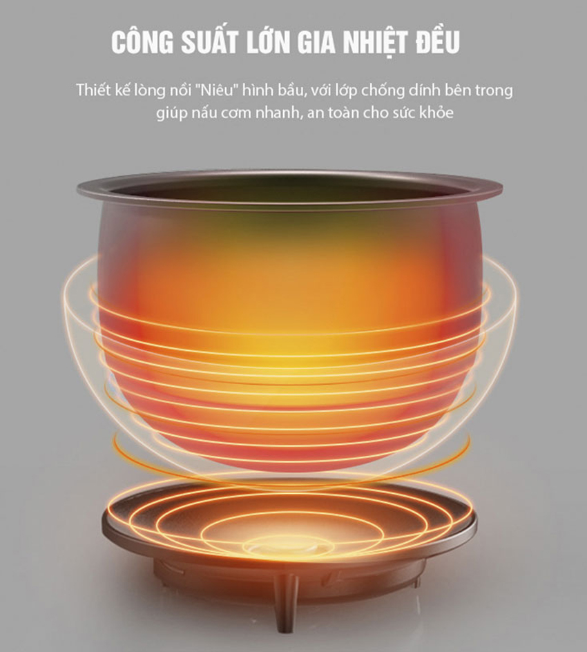 Đặc biệt với thiết kế lòng nồi “niêu” hình bầu với lớp chống dính bên trong giúp nấu cơm nhanh, an toàn cho sức khỏe của gia đình bạn.
