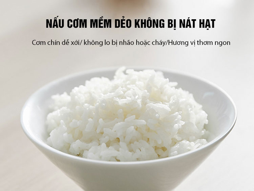 Nấu cơm ngon hơn, dẻo hơn: Lòng nồi có độ dày chuẩn với lớp chống dính an toàn từ các thương hiệu nổi tiếng (Whitford, Dupont…) cho cơm chín nhanh, ngon mà không bị dính, an toàn sức khỏe.