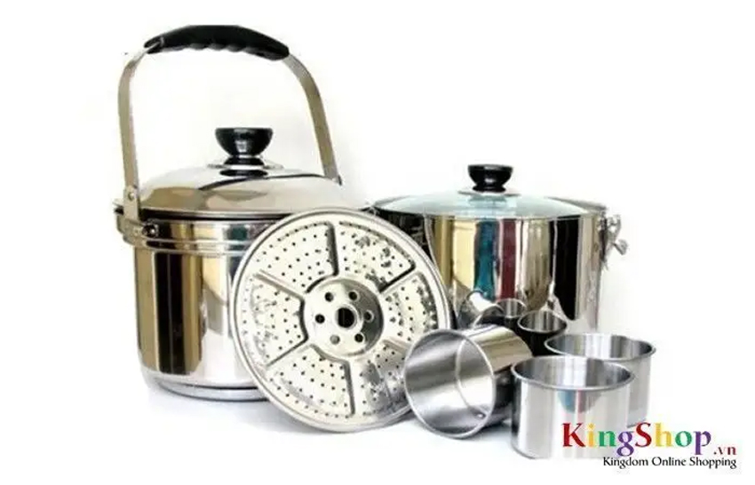 Với các phụ kiện đi kèm như khay hấp cách thủy hay các ca nhôm, inox, bạn sẽ cho thức ăn vào mỗi lại khay, ca rồi cho vào nồi ủ chung.