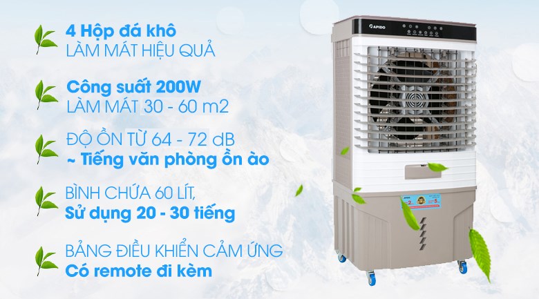 Quạt điều hòa Rapido 9000D công suất cao, làm mát nhanh chóng cho không gian rộng, dễ dùng, bền tốt, giải pháp giải nhiệt hiệu quả và tiết kiệm cho ngày hè.
