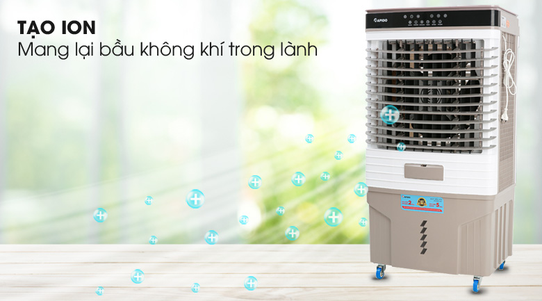 Quạt điều hòa Rapido Turbo 9000D có khả năng tạo Ion công nghệ Hàn Quốc tạo ra các chùm ion âm được thổi liên tiếp vào không khí. Đồng thời những chùm ion âm này sẽ tìm và bám vào các phần tử mang điện tích dương bay lơ lửng trong không khí như bụi mịn, mùi hôi, nấm mốc, vi khuẩn, ion hóa và tiêu diệt chúng. Từ đó giúp làm sạch không khí, thư giãn tốt hơn, đảm bảo an toàn cho sức khỏe gia đình.